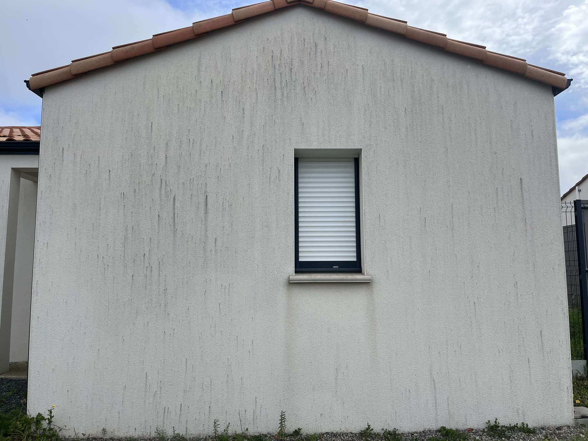 Avant la peinture, nos façadiers préparent chaque mur avec soin. Nous pulvérisons un produit fongicide pour éliminer les algues, puis nettoyons la façade au Karcher haute pression pour retirer les salissures et résidus.